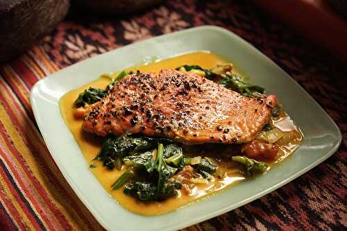 Crêpes are delicious on their own, but adding spinach takes it to another level, a healthy one in fact! Filling each spinach crêpe with gently poached salmon, mushrooms, and extra spinach in a spring onion sauce makes a wholesome and delicious dish for.