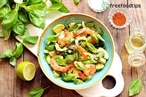 Shrimp Avocado Salad, with Spinach, Red Lettuce and Basil, easy main course salad