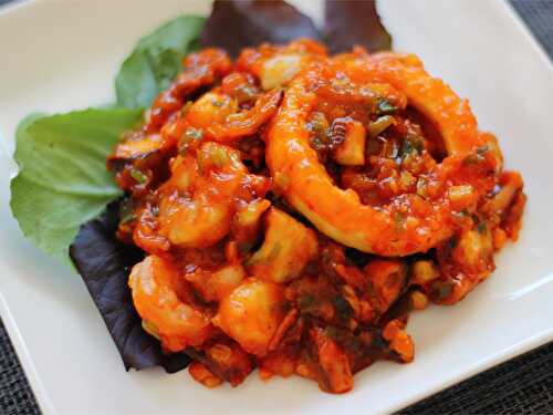 This mixed seafood recipe is similar to "sweet chili fried shrimp", one of the most popular Chinese-Japanese dishes, but much easier to make!