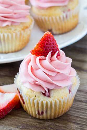 Use our recipe to make these yummy strawberry cupcakes containing real fresh strawberries and refrigerate them.