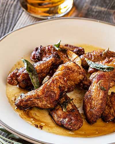 Slide this plate over, they've got crispy wings drenched in a sage butter sauce.