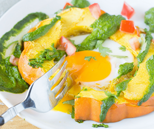 Chimichurri Squash Egg-in-a-Hole is a fun low carb nutrient and flavor-packed fall meal! Gluten-Free, Dairy Free, Paleo Friendly @safeeggs #sponsored