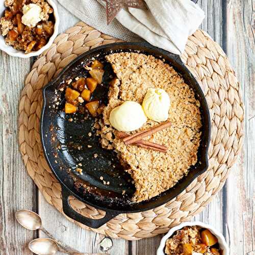 Imagine a juicy cinnamon-caramel sauce mixed with tangy diced apple topped with a fluffy and light gluten-free crumble topping.