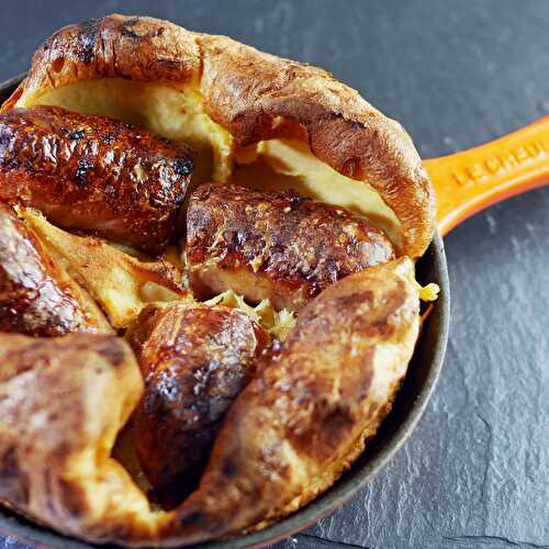 This classic British toad in the hole recipe pairs juicy sausages with a Yorkshire pudding crust to make a tasty, filling and hearty meal.