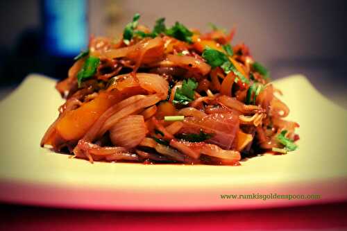 Chilli beansprout is an indochinese dish which is the amalgamation of Beansprout, Peppers, Onions, Garlic, cilantros, Soya sauce and ground spices.