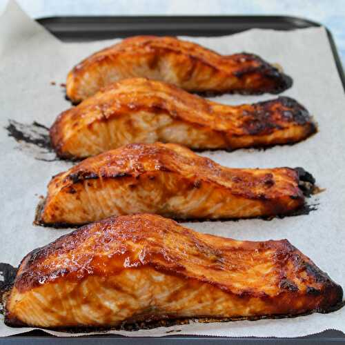 A pretty salmon fillet magnified with a sweet & savory sauce that is so easy to make.