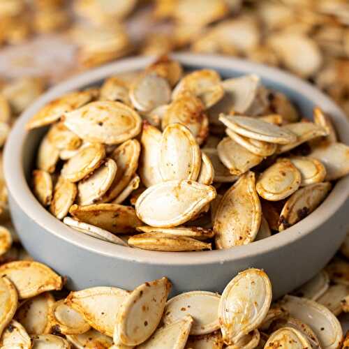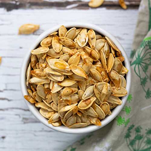 Salt and pepper roasted pumpkin seeds are the easiest pumpkin seed snack.
