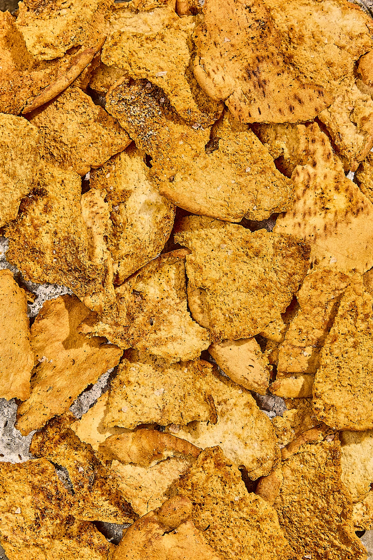 Toasted Za'atar Pita Chips are tasty triangles of za'atar seasoned pita bread toasted to crispy perfection.