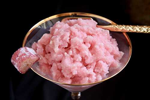 Rhubarb granita is a flavor you probably won't find in Italy, but trust me, you'll love this icy treat that's even better with whipped cream.