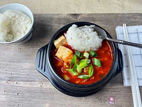 Soondubu jjigae, a comforting Korean stew made with tangy kimchi and silken tofu, is the perfect vegan recipe that will keep you warm all winter long.