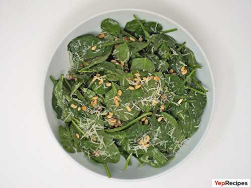 Baby spinach, toasted pine nuts, and shaved Parmesan cheese tossed with olive oil and lemon juice.