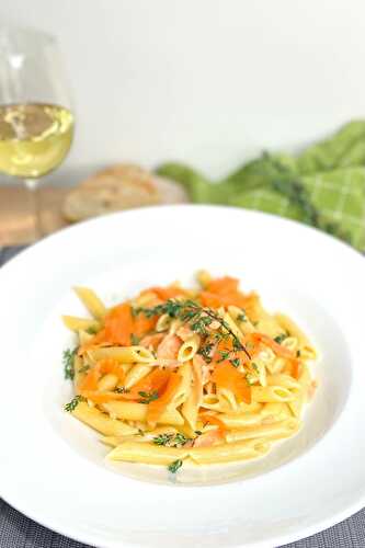 Penne with cream and smoked salmon is a delight for the eyes and the taste buds.