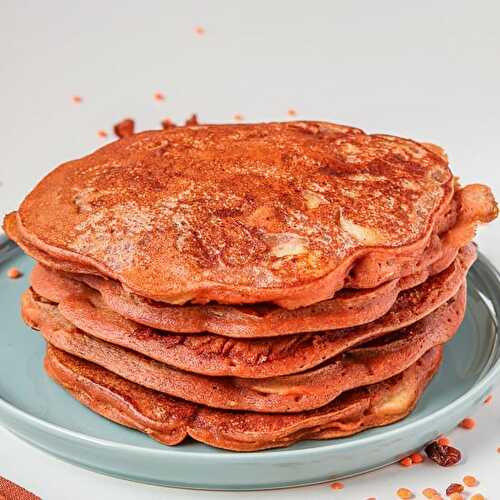 These fluffy vegan pancakes with red lentils are sweet, fluffy & filling with banana chunks melting in your mouth, they're loaded with antioxidants to help you fight inflammation and anemia.