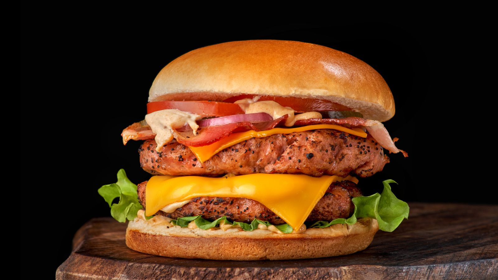 This juicy, restaurant-style Big Pig burger features a 50/50 patty piled high with savory BBQ pulled pork, crispy bacon, and melted cheddar cheese.