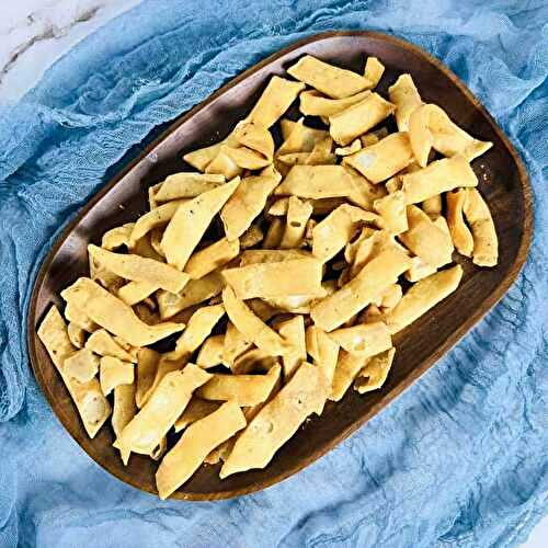 Spicy shankarpali (or namak para) is a savory Indian snack enjoyed during festive occasions or as a tea-time treat.
