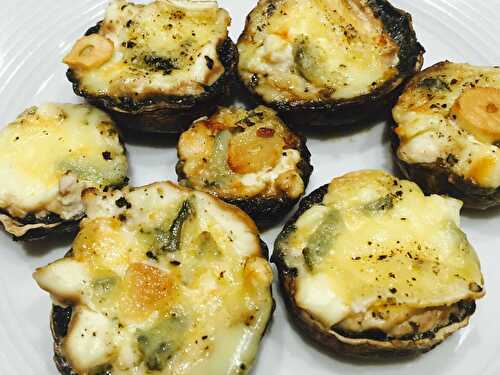 These delicious stuffed mushrooms are topped with garlic and two types of cheese and herbs.