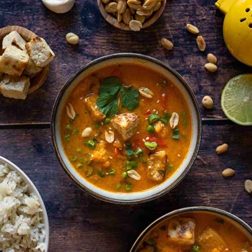 This red Thai satay tofu is a combination of a spicy red Thai curry sauce, and a creamy peanut butter satay sauce - an amazing fusion!