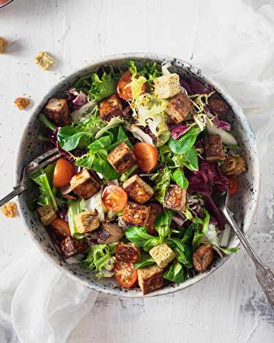 A simple but tasty recipe - this smoked tofu salad combines fresh vegetables with crunchy, fried smoked tofu for some extra protein.
