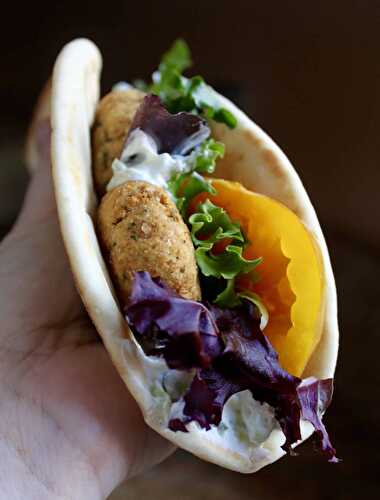 Fresh lettuce leaves, sweet and tangy tahini dressing and crispy falafel in pita bread are how to make a delicious falafel sandwich.