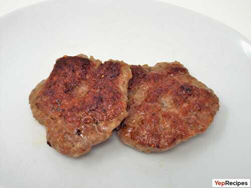 Homemade breakfast sausage patties made with ground pork, sage, garlic, paprika, and crushed red pepper.