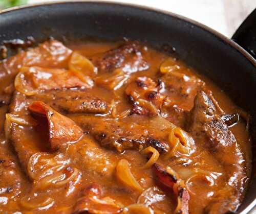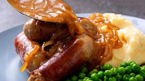 Bangers and mash with onion gravy is a classic British dish that is hearty, comforting, and makes a great meal for the whole family! This recipe combines juicy pork sausages, creamy mashed potatoes, and rich onion gravy to create a simple yet filling.