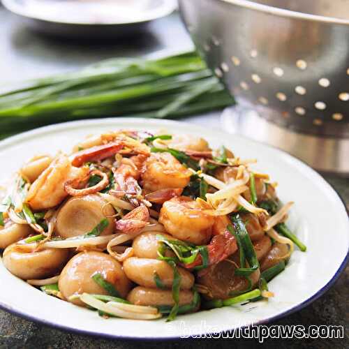 Yam abacus seeds stir-fried in Char Koay Teow style, stir-fried yam abacus, yam abacus seeds