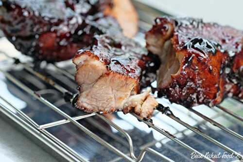 After an overnight marinade, these Char Siu pork ribs, also known as Chinese BBQ pork ribs, are cooked slowly over a water bath in the oven.