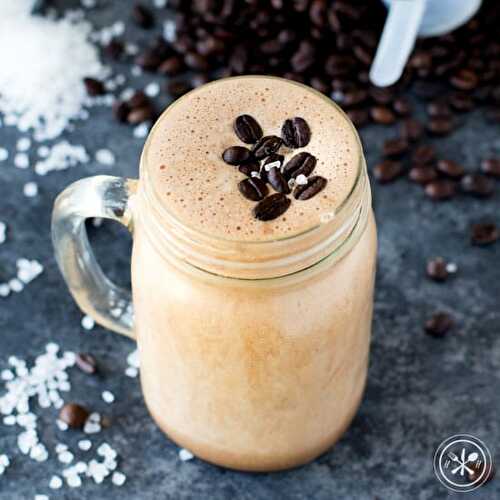 This Salted mocha smoothie is a creamy, salty, & chocolatey version of your favorite drive-thru coffee drink.