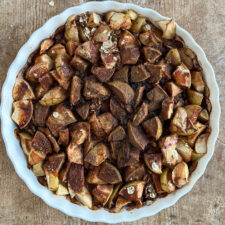 This old-fashioned Apple Crisp (aka Apple Crumble) combines the sweet & spicy filling of apple pie with buttery, nutty oatmeal streusel.
