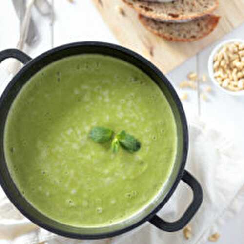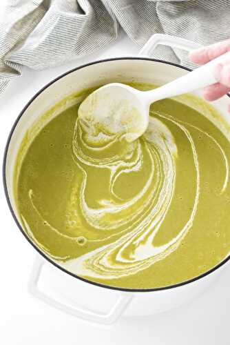 This beautiful green asparagus and pea soup is a super fast recipe that tastes fresh and light.