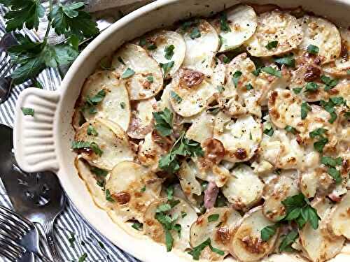Creamy, cheesy, and quite simply the best au gratin potatoes with diced ham recipe!