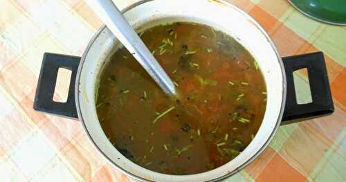 Koli Saaru : A Karnataka style spicy thin chicken curry with rustic flavors.
