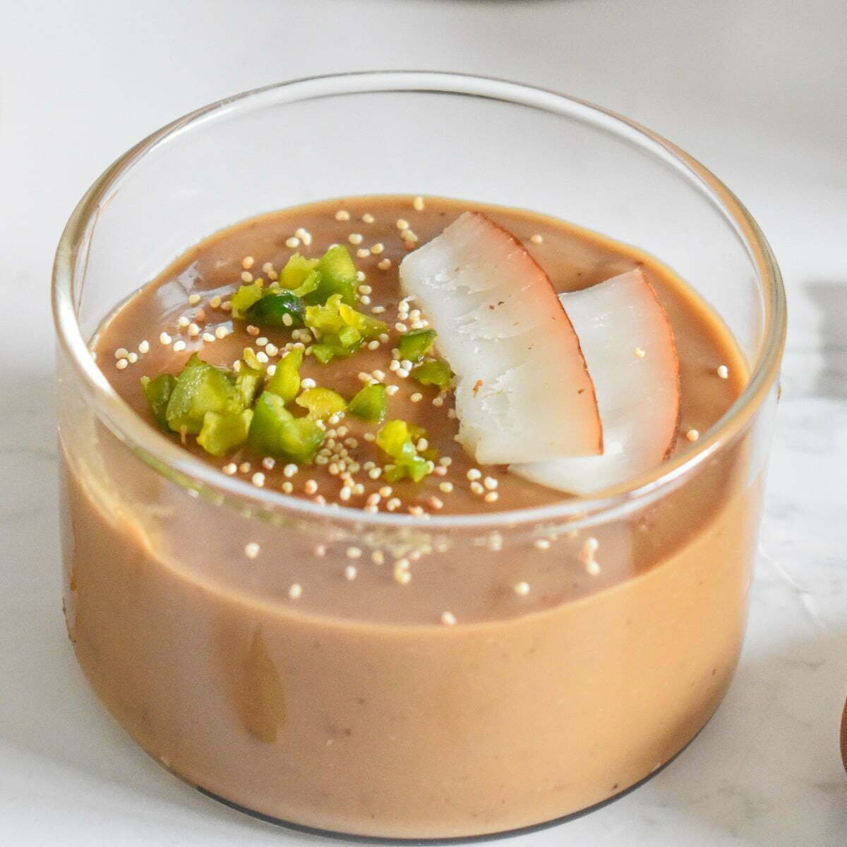 Ragi and Coconut Milk Pudding is a healthy ,gluten free vegan dessert made with finger millets Ragi) and fresh coconut milk , sweetened with jaggery and flavoured with cardamom powder.