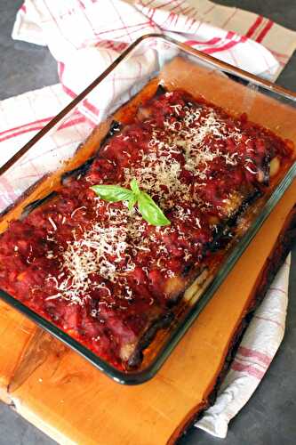 This eggplant gratin recipe combines eggplant slices with a creamy, cheesy sauce as well as a tomato or marinara sauce.