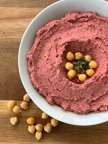 This beetroot and chickpea hummus is bright pink, creamy, flavorful and nutritious.