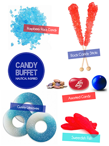 A Nautical Candy Buffet - ideas for a nautical themed candy buffet for your next birthday, wedding, Memorial Day or 4th of July celebrations!