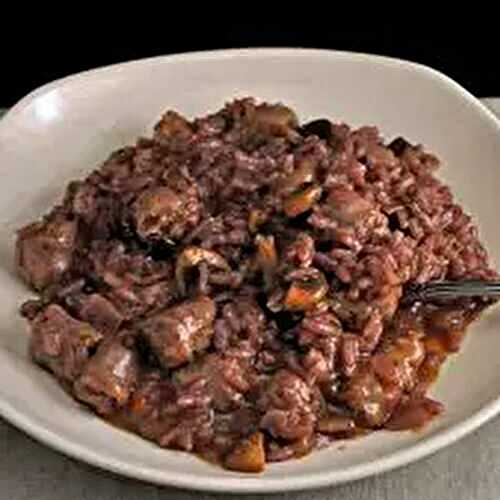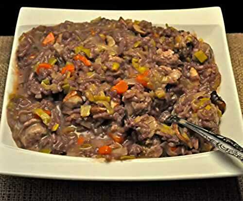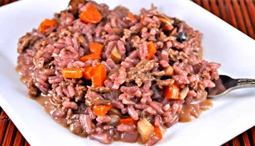 Red Wine Risotto with Ground Beef & Mushrooms, another quick & easy risotto for two.