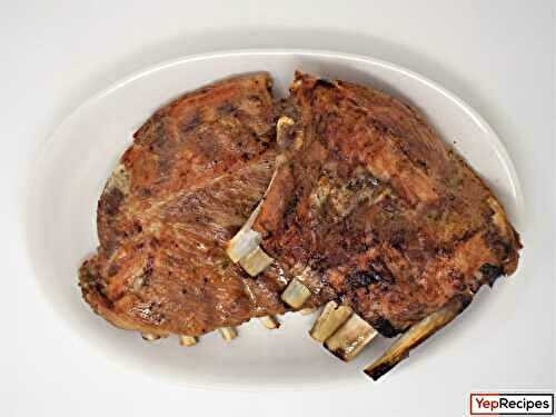 Pork spare ribs rubbed with a mixture of mustard, vinegar, and spices then slow cooked until tender and finished under the broiler.