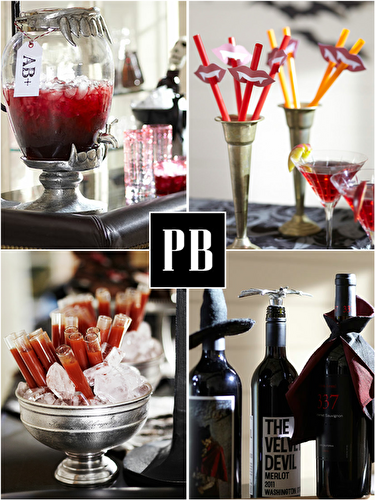 Halloween Vampire Inspired Blood Bar Party - spooky ideas for a grown-up adult party, with bloody vampire cocktails, food and DIY decorations!