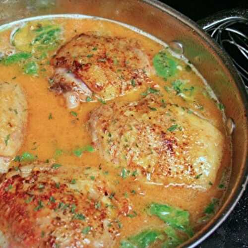 Tangy lemon butter sauce with a hint of thyme on beautifully seared chicken thighs!