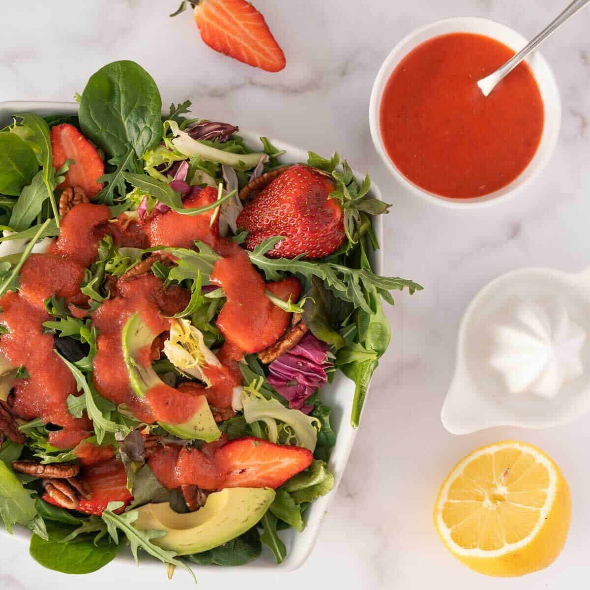 This delicious strawberry kale salad is very easy to assemble.