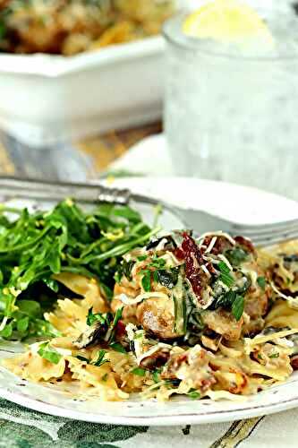 An easy and delicious version of Tuscan Chicken made in the Instant Pot; with mushrooms, sun-dried tomatoes, and spinach in a creamy sauce.