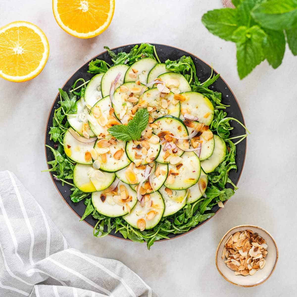 Marinated thinly sliced summer squash and red onions make an interesting summer side salad.