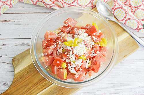 This light and simple Marinated Tomato Salad with Feta is easy to make and perfect for a light lunch or as a side dish all Summer long!