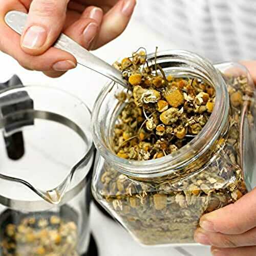 Chamomile Tea is a herbal caffeine-free tea made from dried daisy like Chamomile flowers.