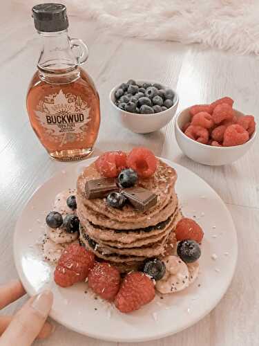 An easy and quick vegan pancake recipe that everyone will enjoy! Top with fresh berries and maple syrup for a healthy start of your day.