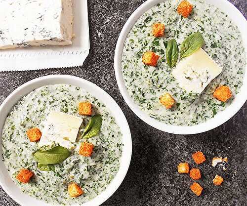 Baby Spinach Gorgonzola Creamy Soup: Delicious spring comfort food.