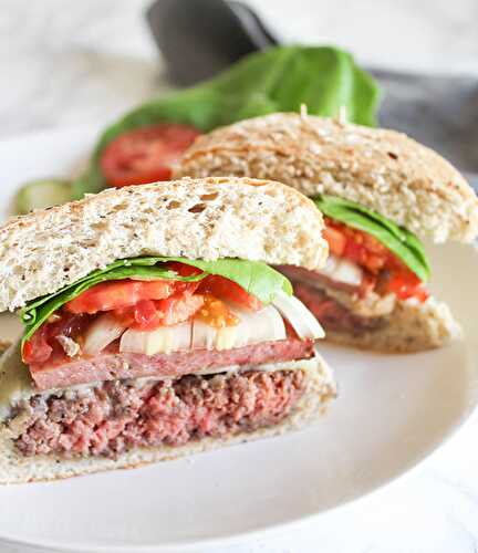 This easy, 3-ingredient burger made with mozzarella, avocado, and tomato is a slightly healthier way to indulge in a restaurant favorite.