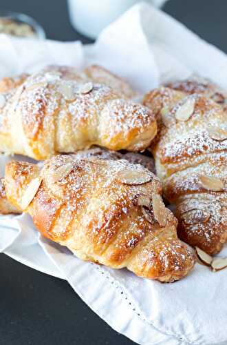 Delicate and flaky Almond Croissants - from scratch and made in your own kitchen! This recipe uses day-old croissants that are filled with a rich and creamy almond cream.