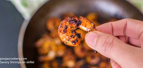 Savory Shrimps on skillet Recipe - Pooja's Cookery